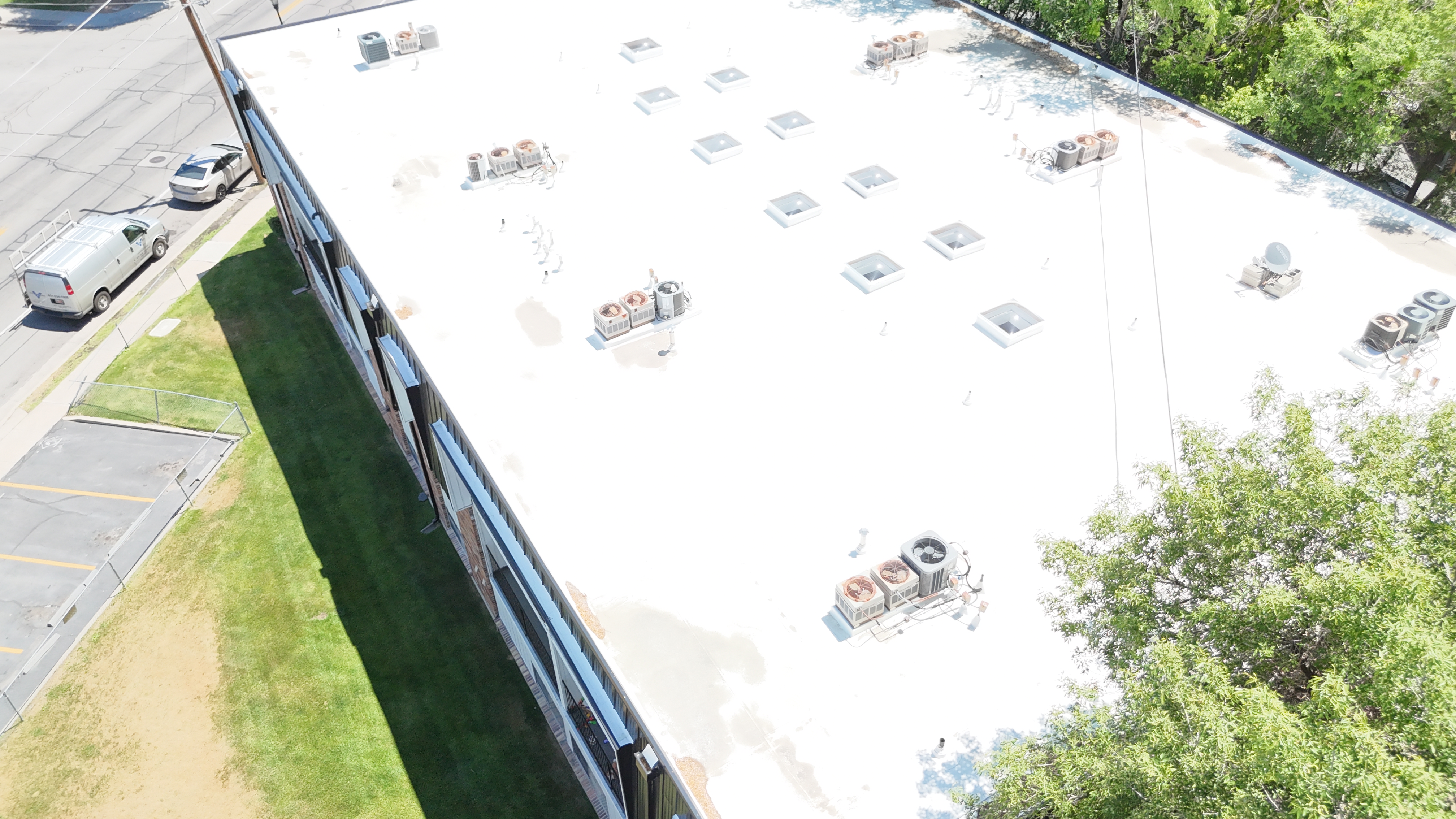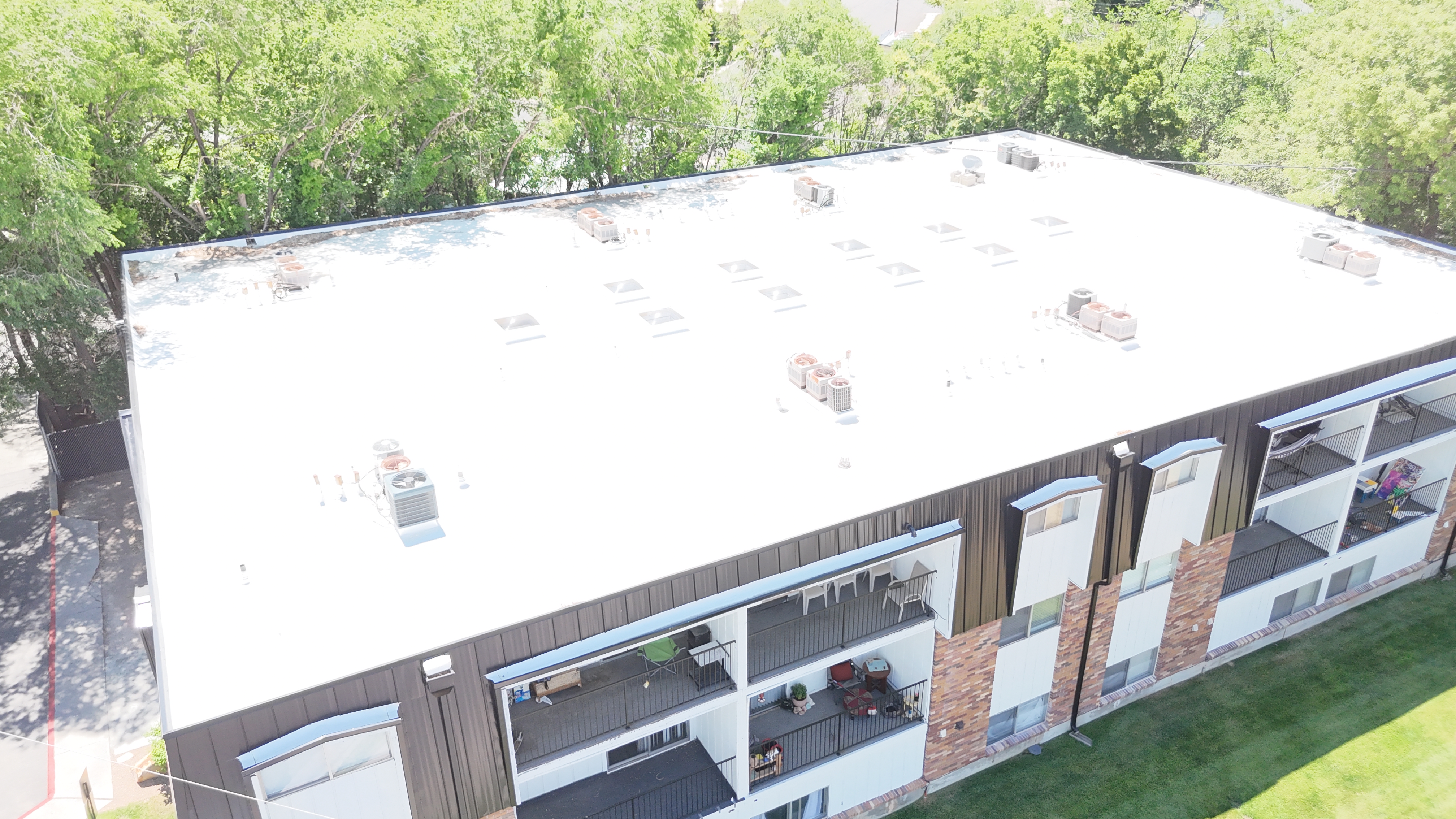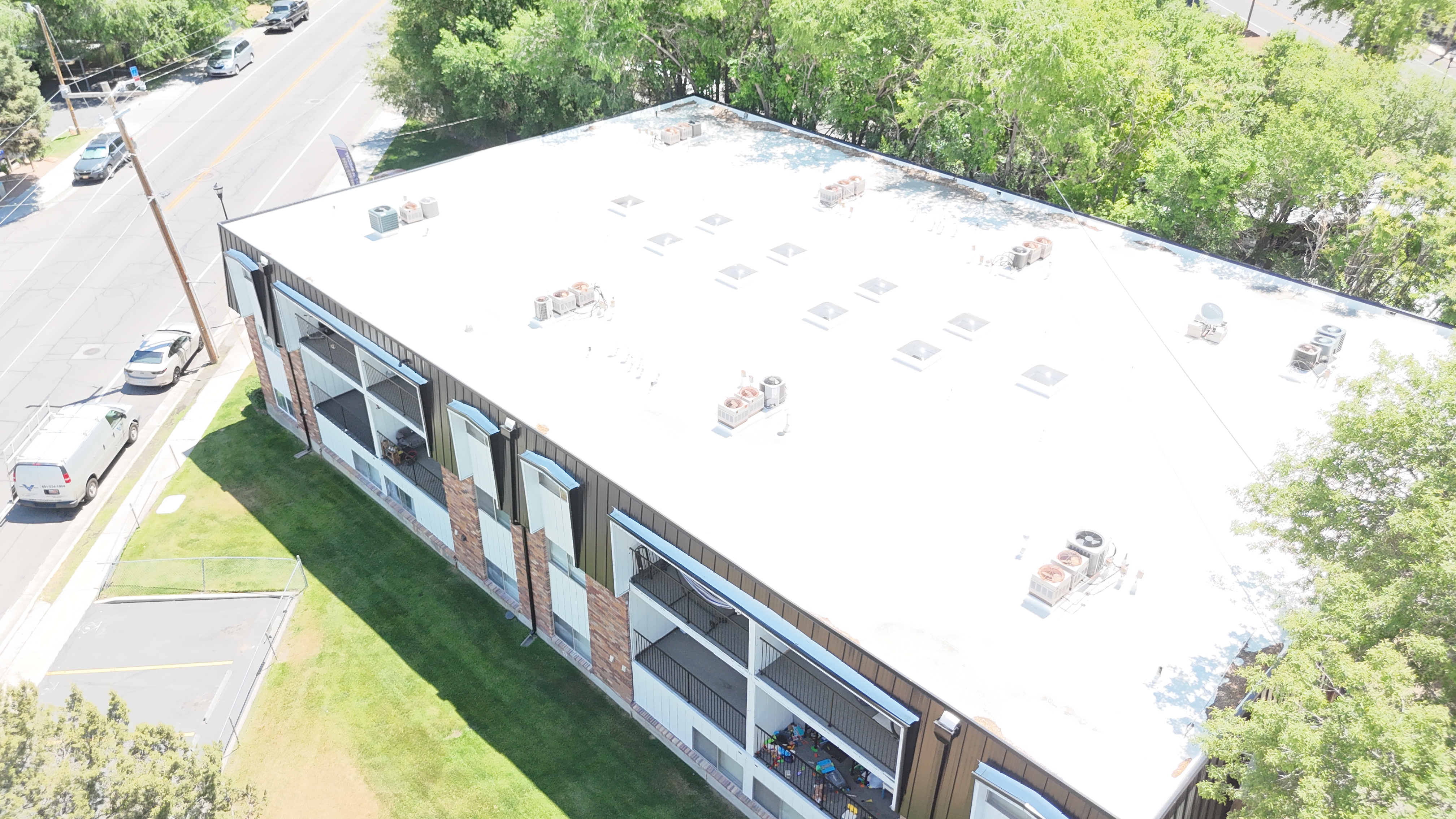 "We were able to remove all the old roofing for these apartments buildings had to fix a lot of dangerously damaged wood due to prolonged leaks. Installing new membrane and metal for the mansard."1